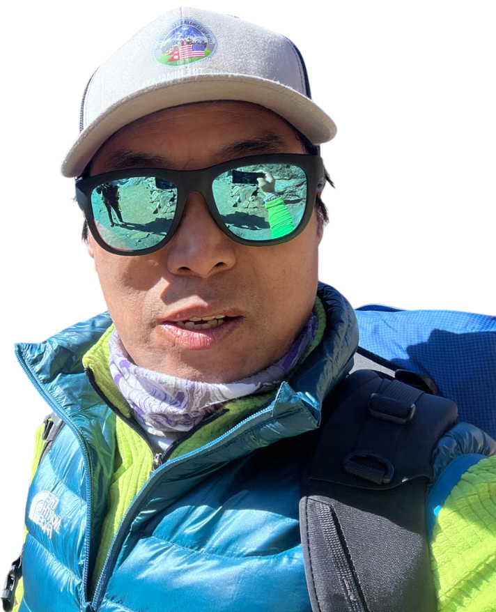 Then I start to climbing of high Mountain. Spring 1999 I got opportunity to lead and climbed ‘Kanchanjunga’ 8586 meter third highest peaks in the world with Mr. Park Young Seok, Korean team . We was the only one expedition team from south side. We drive via road Kathmandu to Taplejung. Then trek to Yambuding, Cheram and by Khangjung glacier to Kanchanjung Bass camp. Few days setup camp, rest and made Lama Puja ceremony Pray Protect teams, safety with successful climb. Then fixed route to C-I, C-II and deposited necessary equipment and suppliers there and return to BC for summit rest. We came rest at Cheram too few days and then return to BC. We got new weather report and we climbed up C-I,II and C-III last camp with 4 Sherpa climbers and 2 members. Then 2 return to C-II waiting for us and we stay there few hours rest. Then around 9 pm I made hot drink and food. Then we started around 12 midnight for summit push four of us included me. One of member return on the way and we continue with manrope. We not put fixed line. We have not enough time to fix rope. It’s was very deep soft snow difficult to open trail up. However, we reached Chimney House below Top. It was quite late and my client Mr. Park O2 is finished and my cousin Brother climbing Sherpa who is with us. He have also very low pressure O2 left. I have only one bottle which is I’m using. So, my bottle have more then half oxygen. I use very low pressure. I was front to leading route and my client was between. I look back to them and I saw my client calling me by hand and asking oxygen. I have no choice. We don’t have extra bottle. I need to save client and make expedition success. Then I gave my O2 and continue lead route. Then we reached 3:27 pm on the Top of Kanchungjunga 8586m main peak. we took picture and pray peace in World shortly and return down. But, we are already very late before Khangjung pass we got dark. Then we keep continue down at night. We lost route. The trail we open on the way up cover by snow and the weather was cloudy. We try to reach camp.but, until 11:30 pm we couldn’t get camp. Then I decide to stay bibag above 8200m. I deck Ice for three person sit down and made ice screw anger for safety. Then clips karabiner safety to ice screw. Then next morning 5:00 am I weak up and saw we are just stopped over blue ice. If we descend last night from that point. There is no way to survival. It’s very steep. Then I saw the tent right side down. We back tent and made hot drink and I worm up Radio betray. Last evening our radio is death frosting Betray. Then we contact C-II sherpa to come pick up C-III. Our client get snow blank and descend by three sherpa. Then we continue down, member and sherpa are stopped C-I and I came down BC. Next day all joined BC and expedition is successfully over. It’s my first time 8000m. Summit and this success made me inspired to climb other high mountains.
