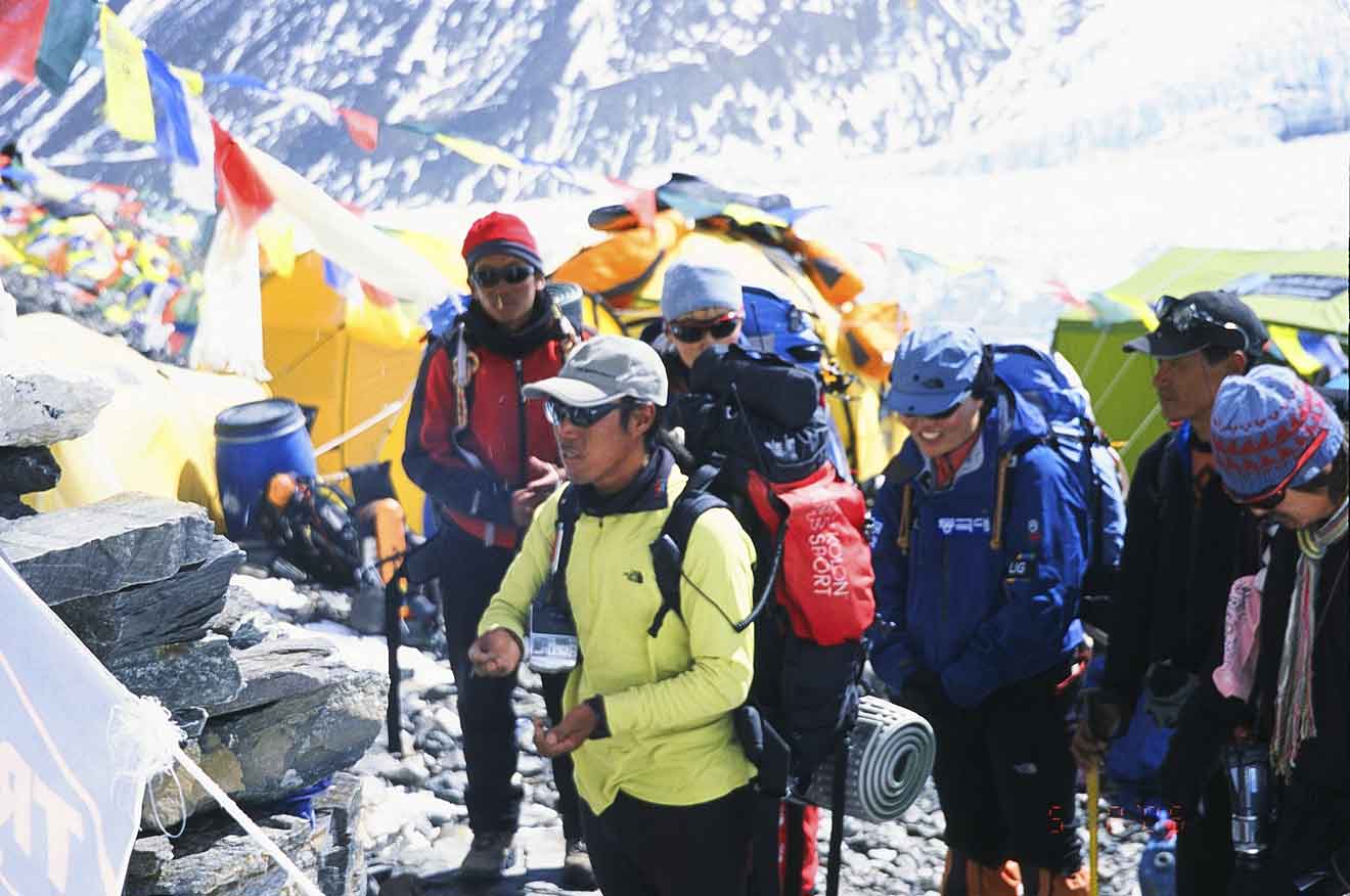 2004 Spring I lead Everest from North side Tibet with big Italy 50th Mt.K2 Golden jubilee expedition team for Everest . They have very big team for K2 after Everest. Some members are going to K2. The expedition Everest was many different research members in the team. So, we had big preparation Kathmandu. Then we drive to kadari Nepal Tibet border with some members and 19 Nepal staff included Sherpa climber and cook staff. Then Zangmu, Nyalam, Thingri to CBC by road. Some members join CBC from Lhasa. We setup big camp side at CBC. We have big medical others more then 30/40 tents until return back from ABC. We have two cook team for CBC and ABC. After few days rest, setup camp and prepared Yak Porter to ABC. We trek two days to there. We made one big Tent at Indome. In case emergency during the expedition. Because, we have big large group. Then we setup ABC 6600 miter top side. Our team are researching many different way like rock, ice snow, altitude etc. we have four Tibetan High Altitude supporter and one women Tibetan member. we made puja ( ceremony ) pray at ABC then we start climb up North Col,C-II and deposit at last camp ( C-III ). Same clients acclimatize backing forth few time NC,C-II and touch Las camp. Then we have few day rest for summit weather window. We got weather report but, very short period summit window. Then we left for summit but, due to strong wind we have to return from first steep. Then we return ABC and waiting weather. Then finally we got good weather report. Our first Tibetan team summit one day early summit with one women, two Tibetan High Altitude supporter. Then second day we are Seven team members included four Sherpa climbers summit Top of The Mt. Everest 8848miter high mountain in the World on May 24 2004 at 10:00am. We spend about 2 1/2 hours on the Top. Pray for Peach in World. We have to put setalite and Altitude Measurement research by Robert Massine ten miter from the top four direction North/South/East/West. Then we made many Picture and It was really great moment and my big succeeded day for my life first time successful summit Top of the World highest peak. I was three time before 2004 expedition to Everest. But, not get summit.